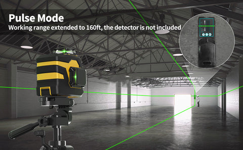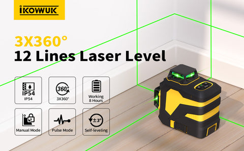 - 【Adjustable Laser Brightness】The laser level has two kinds of green lasers (weaker, stronger), so IKOVWUK laser level can be used in various indoor and outdoor scenes, you can select the laser brightness according to the use environment. Switching the weaker lasers - Pulse Mode, the indicator light will flash continuously.